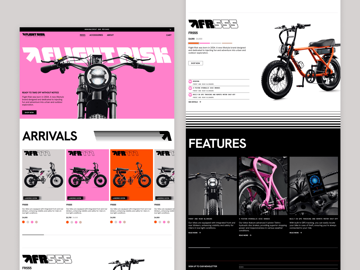 With Christmas fast approaching, Flight Risk needed a Shopify store as fearless as their brand: designed, built and launched without missing a beat. Having 3 weeks from start to launch date meant ensuring clarity and speed in every step. From ideation, presentation, iteration, to development handover.