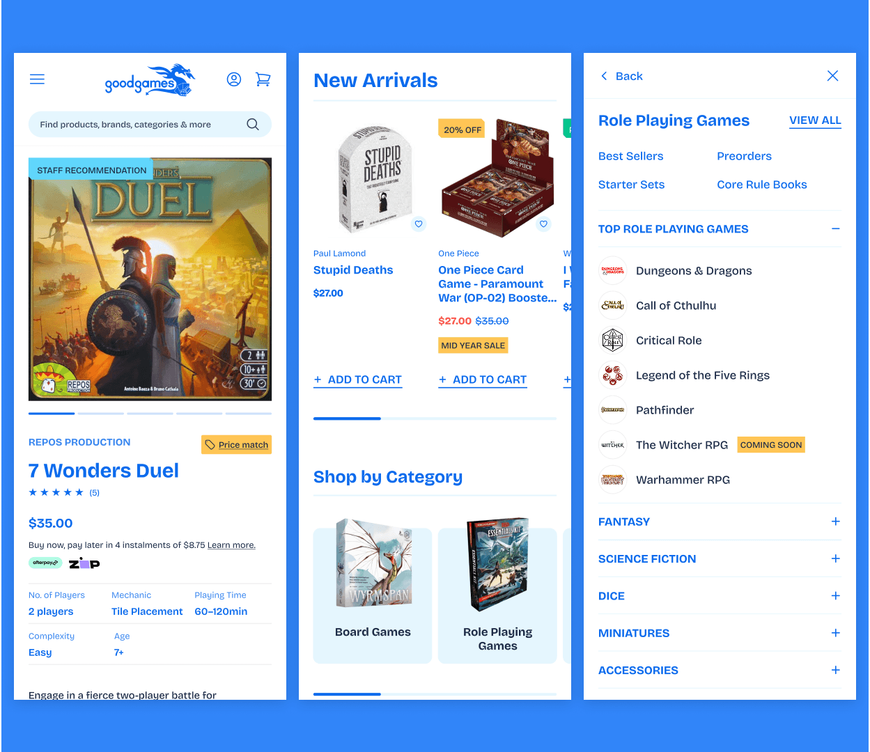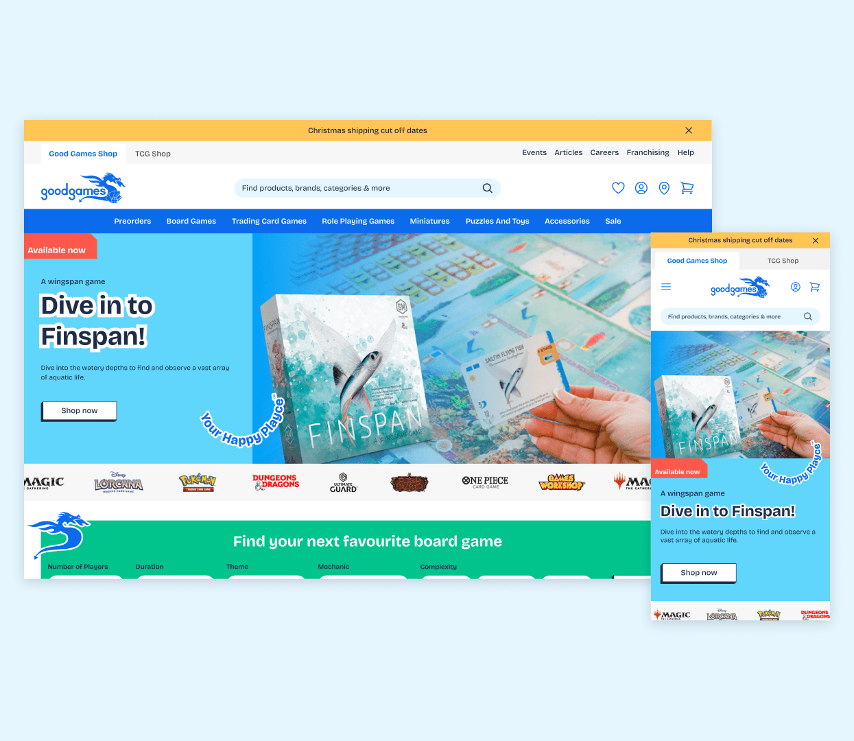 Custom product pages and navigation optimised the site to highlight popular brands and key features of each game.